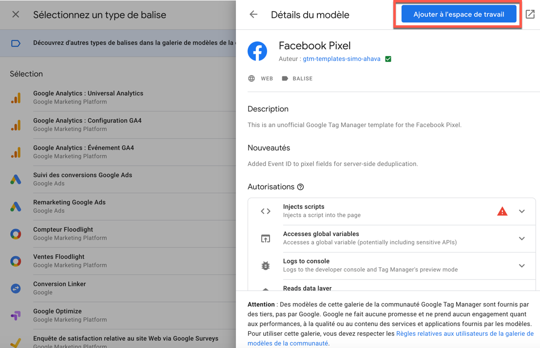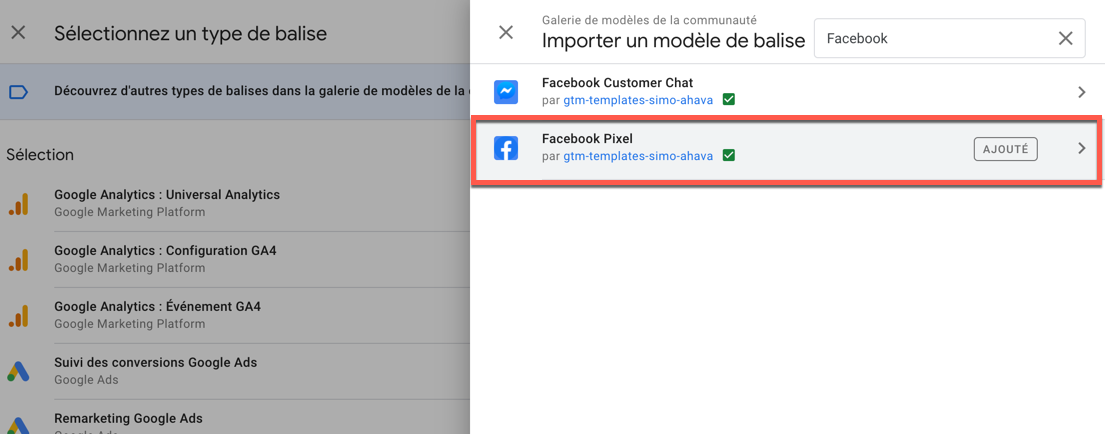 Section titled “Install your Facebook Pixel with Google Tag Manager”If you use Google Tag Manager to manage your tags, you can add your Facebook pixel to your Google Tag Manager account to measure and optimize your ad results