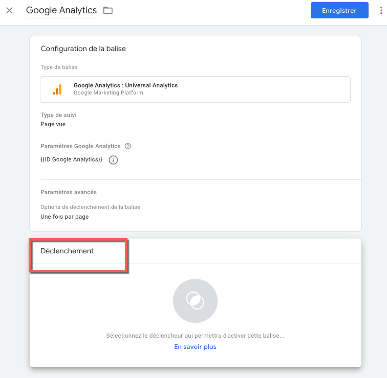 14 - Click on Triggering to choose the trigger that will activate the tag