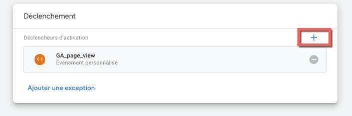 16 - Name your trigger GA_page_view, click on trigger configuration and select the Custom Event trigger type.