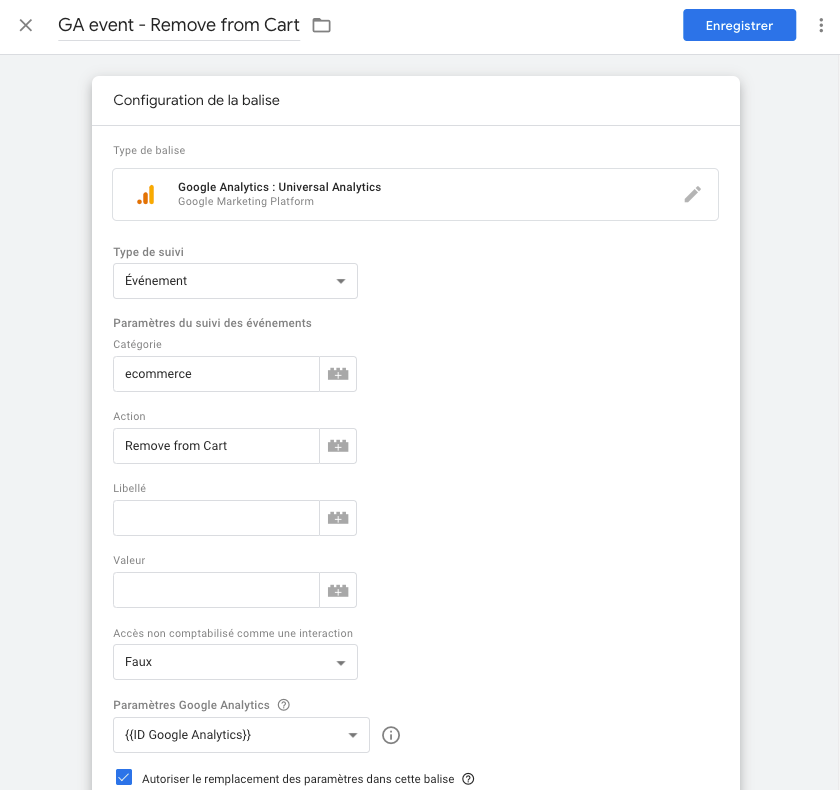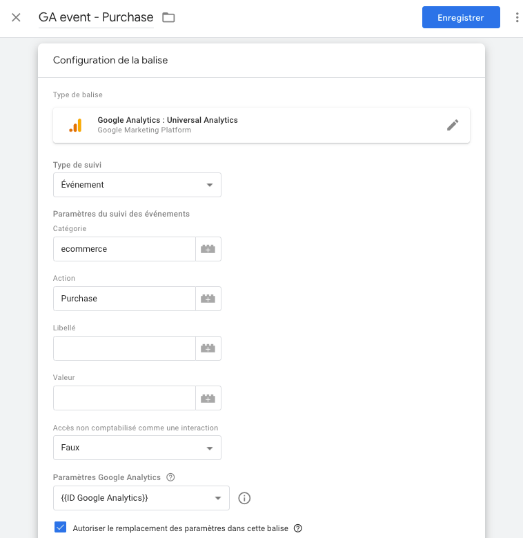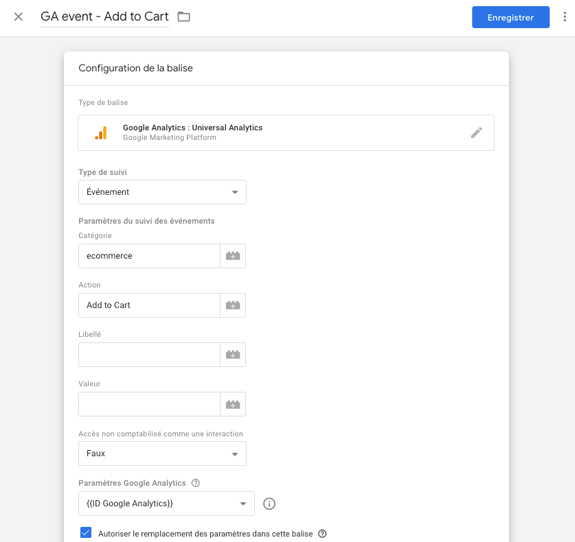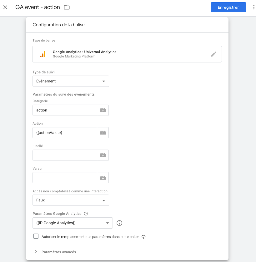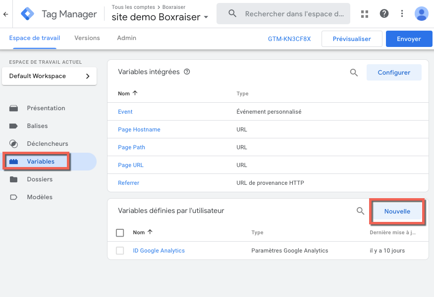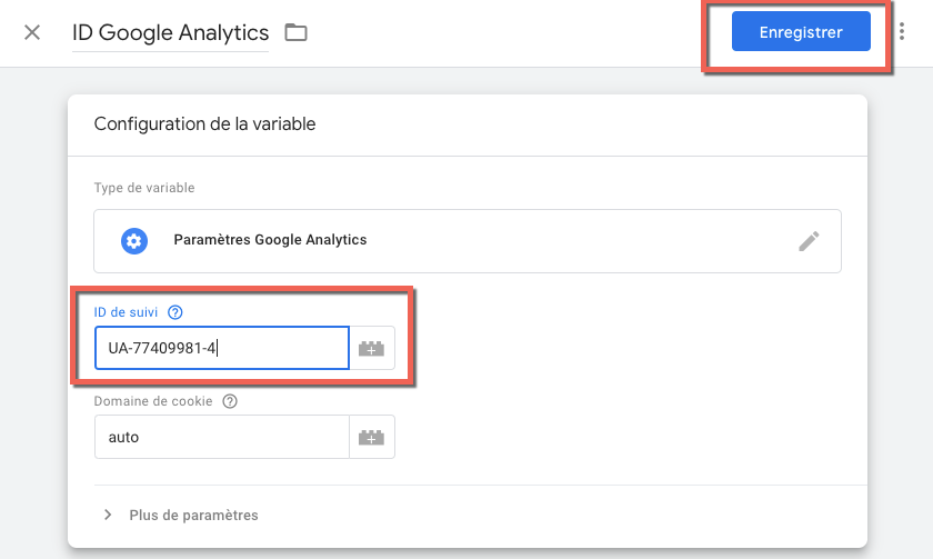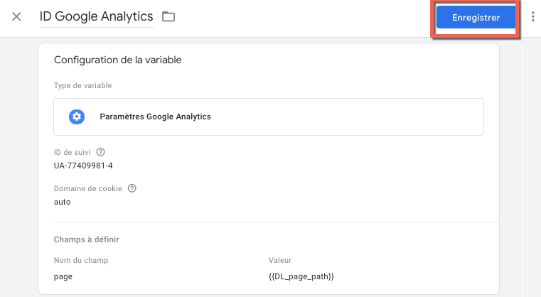 5 - The variable configuration page appears. Name your variable (here, “Google Analytics ID”).
