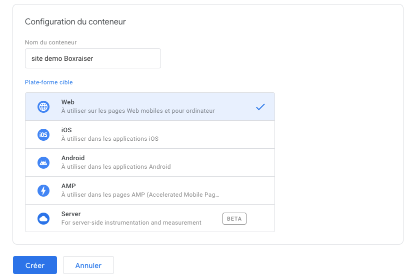 Section titled “Create a Google Tag Manager Account and Container”If you don’t already have a Google Tag Manager account, the first step is to create an account at the following address: https://tagmanager.google.com/. You must have a Google account to log in to the platform.