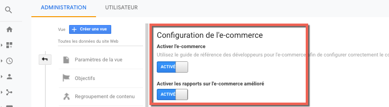 Section titled “Configure E-commerce Measurement”Enable Enhanced E-commerce Measurement in Google Analytics