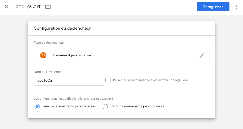 8 - Assign the name addToCart to your trigger. Click on Trigger Configuration and select the Custom Event trigger type