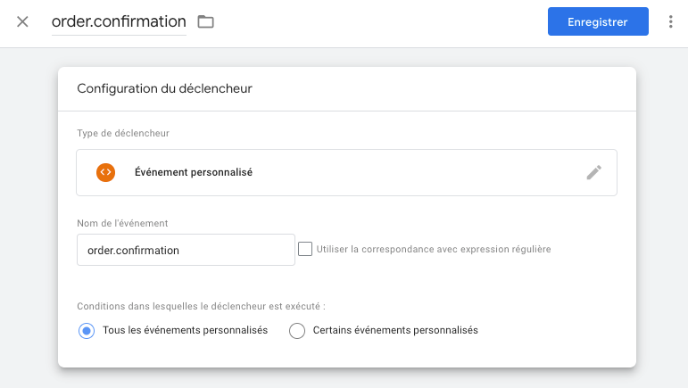 8 - Assign the name order.confirmation to your trigger. Click on Trigger Configuration and select the Custom Event trigger type