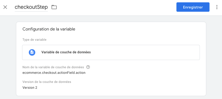 4 - In the Data Layer Variable Name field enter exactly: ecommerce.checkout.actionField.action