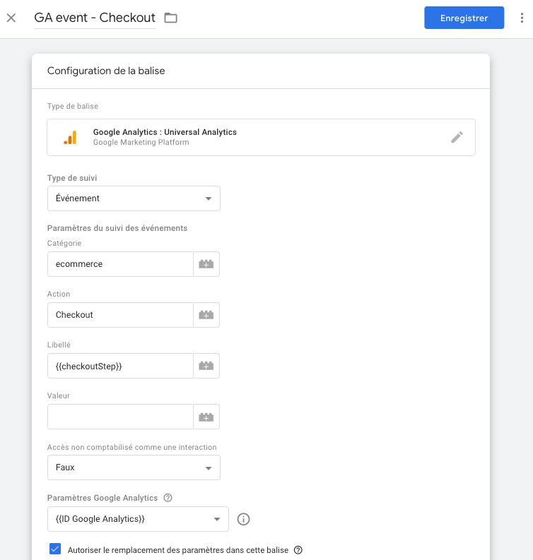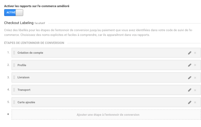 For the label, enter exactly the value above (brackets included) or click on the brick icon and select the checkoutStep variable