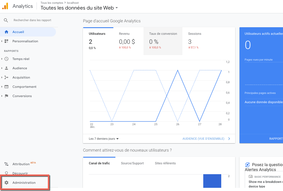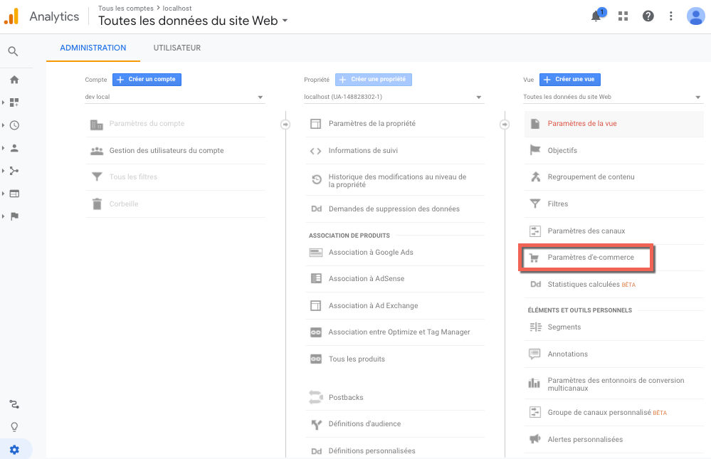 Section titled “Enable Enhanced E-commerce Measurement in Google Analytics”1 - In Google Analytics, go to the Administration section of Google Analytics