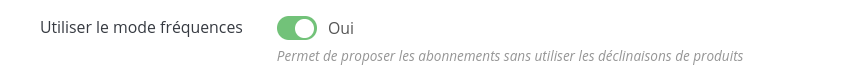 This mode avoids any catalog synchronization and allows adding or removing frequencies without modifying the product. Stock management is unified for all frequencies.